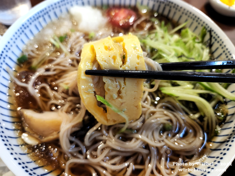 냉소바에는 달걀말이, 방울토마토, 간 무, 와사비가 같이 나옵니다.