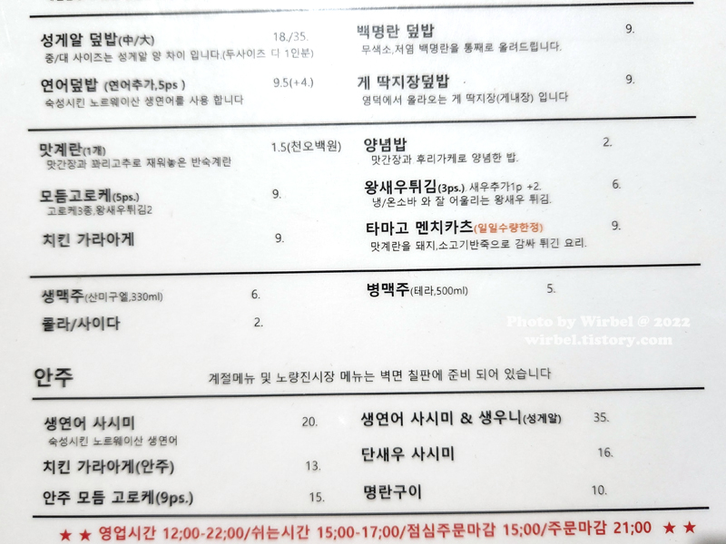 직원 분에게 말해서 잠깐 일반 메뉴판 사진 찍어 봤습니다.