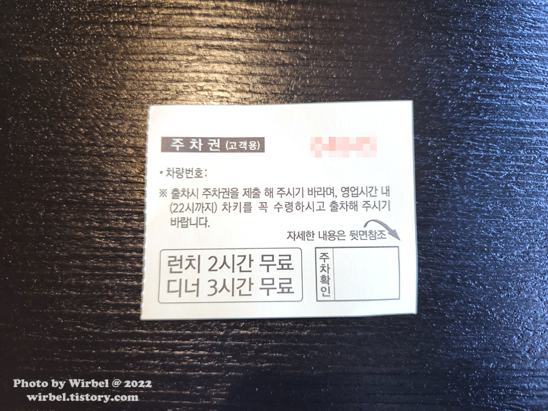 주차확인 도장만 찍어서 가면 되고 별도의 발렛파킹비는 없습니다.