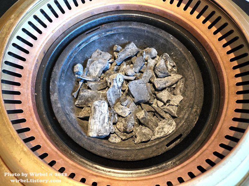 경복궁 참숯은 테이블에서 불을 붙이는 방식을 사용하고 있습니다.