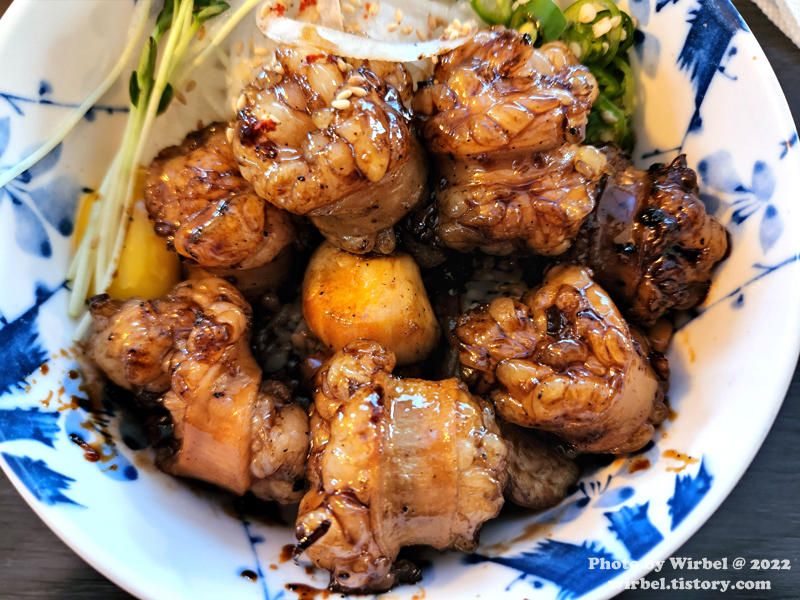 대창덮밥 보통에는 탱글탱글한 대창이 8조각이 들어가 있습니다.