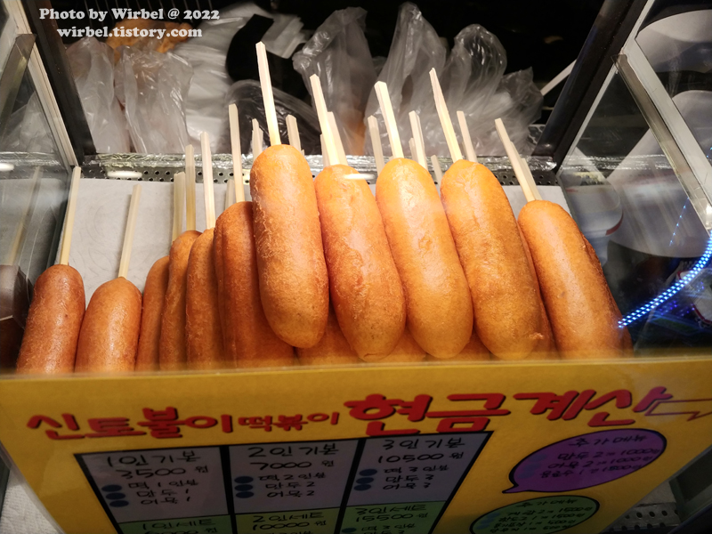 신토불이 떡볶이의 상징적인 핫도그입니다.