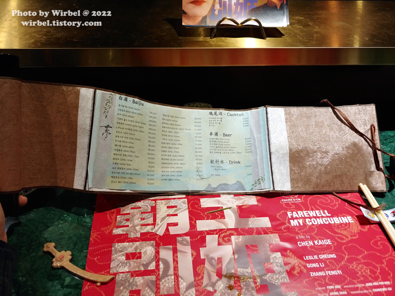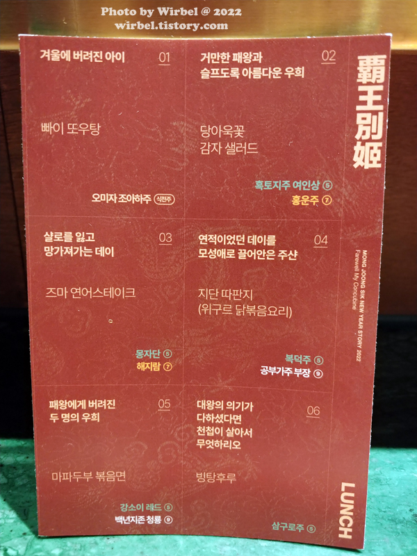 연남동 차이니즈 레스토랑 몽중식 패왕별희 코스요리 메뉴.