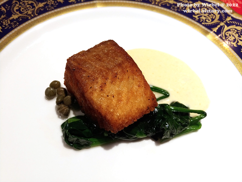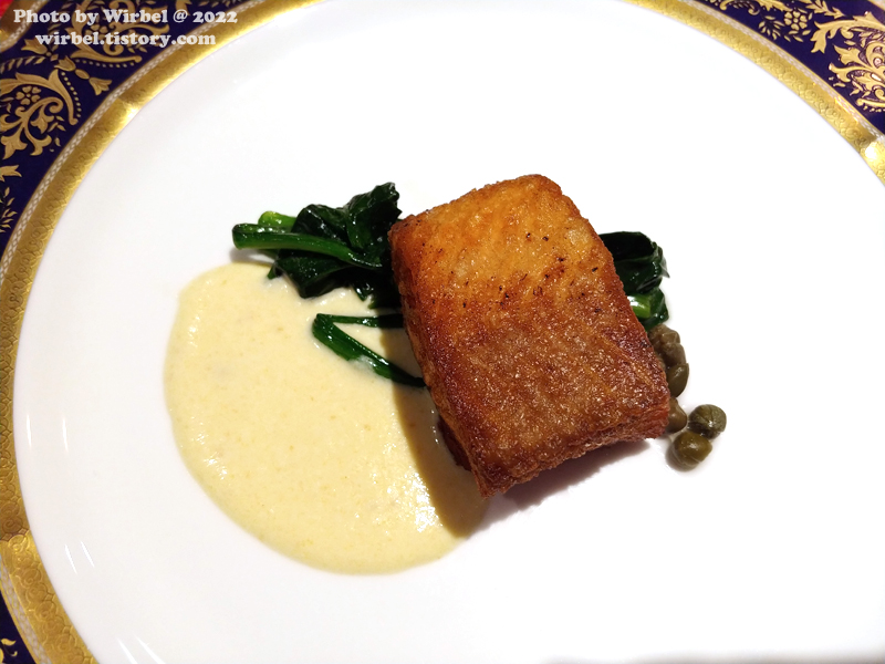 사이드로 시금치, 케이퍼, 참깨 소스가 같이 나옵니다.