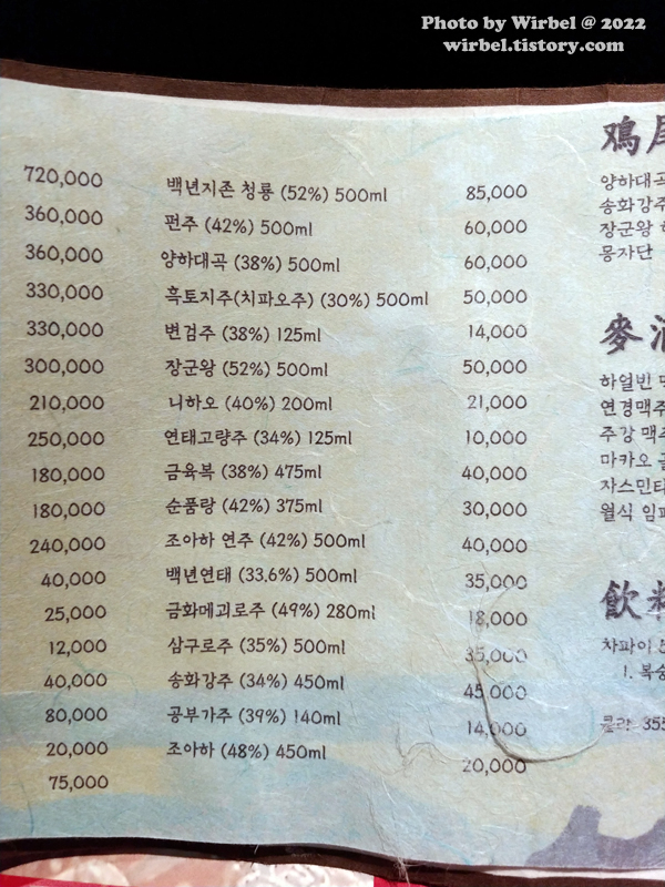 연남동 몽중식 고량주 가격.
