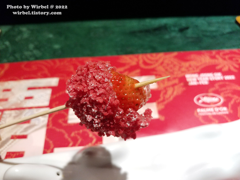 딸기를 감싸고 있는 탕후루입니다.