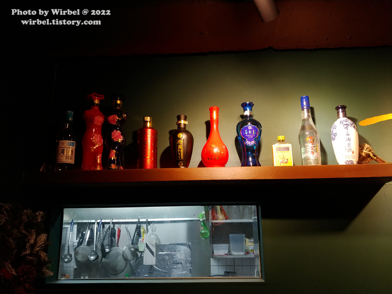 제공되는 고량주는 선반 위에 디스플레이 해놨습니다.