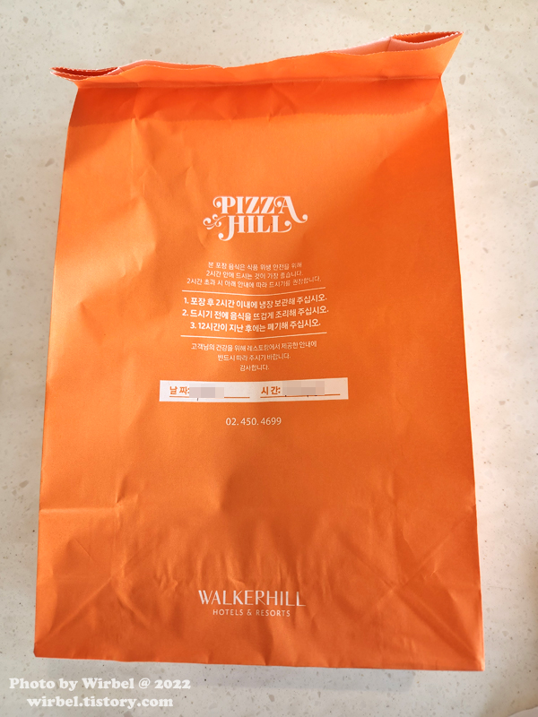 피자힐 피자 테이크아웃시 이렇게 포장해줍니다.