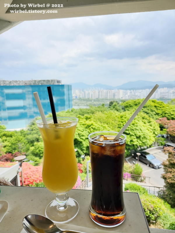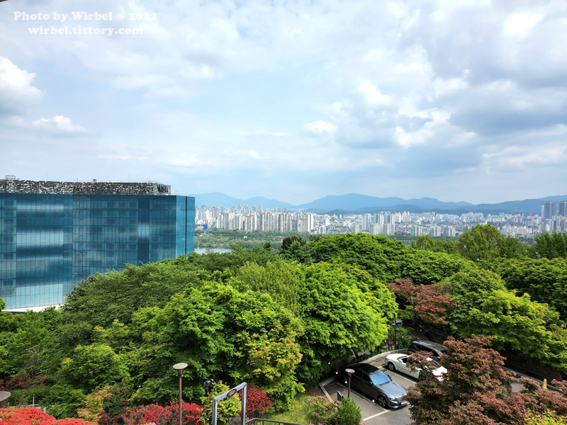워커힐 피자힐 남측 자리에서는 서쪽부터 한강 동쪽으로 한강을 볼 수 있습니다.