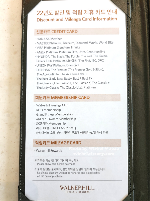 워커힐 호텔 무료 발렛카드는 이렇게 있고 이날은 현대 레드카드로 이용했습니다.