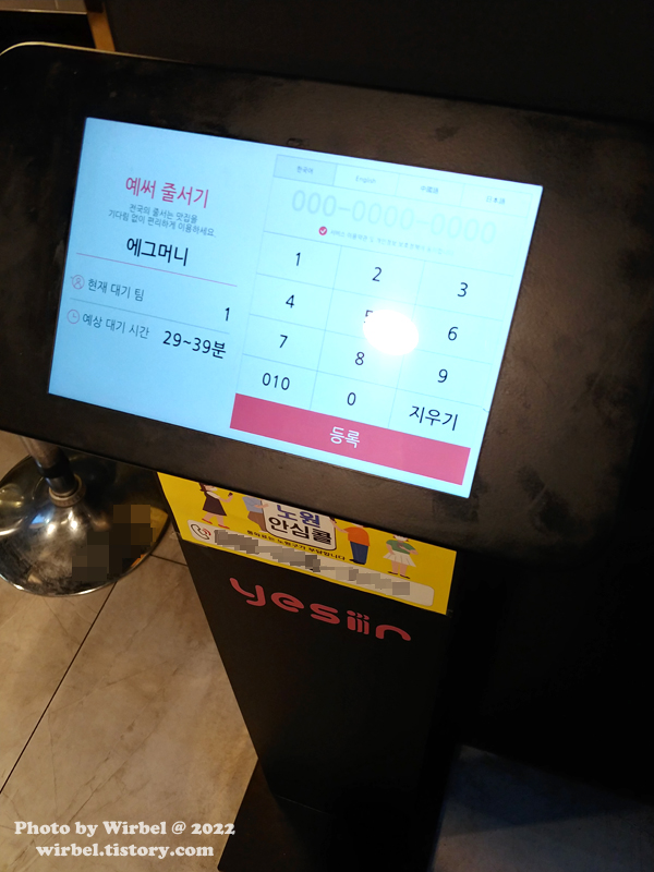 에그머니 웨이팅 시스템은 예써(Yesir)를 사용하고 있습니다.