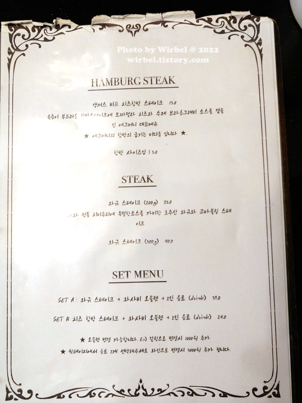 와규 스테이크 200g 28,000원 / 300g 40,000원.