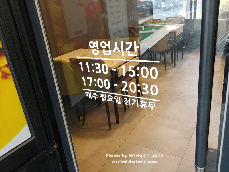비어벨이 다녀온 맛집 & 여행(wirbel.tistory.com)의 비어벨입니다. 후기 남길 때는 긍정적인 시각으로 남기는 편입니다. ^^ 방문했던 시기에 따라 맛, 가격, 서비스 등이 지금과 다를 수 있는 부분을 참고하시고요. 음식점에 대한 생각은 지극히 주관적이니 맛집 후기는 참고만 하시는 거 다들 아시죠?! ^^ |