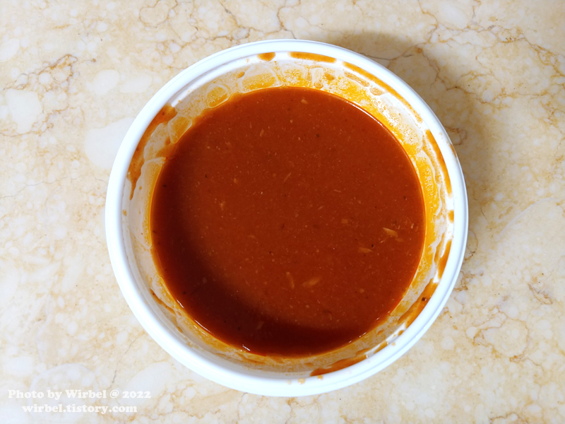 소스는 튜브로 짜는 듯 가지런한 모승입니다.