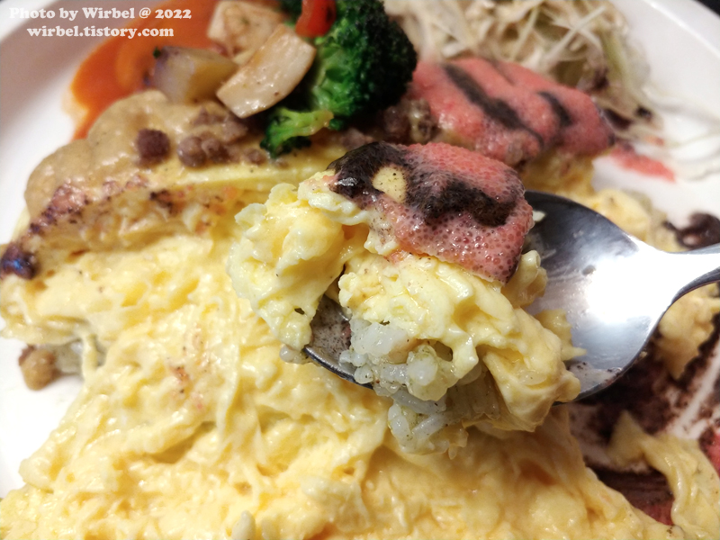 달걀은 완전 흐물거리는 스타일은 아니고 적당히 뭉글뭉글한 편입니다.