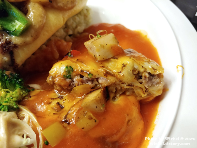 모짜렐라 브라운 그래비 소스가 잘 어우러진 오믈렛.