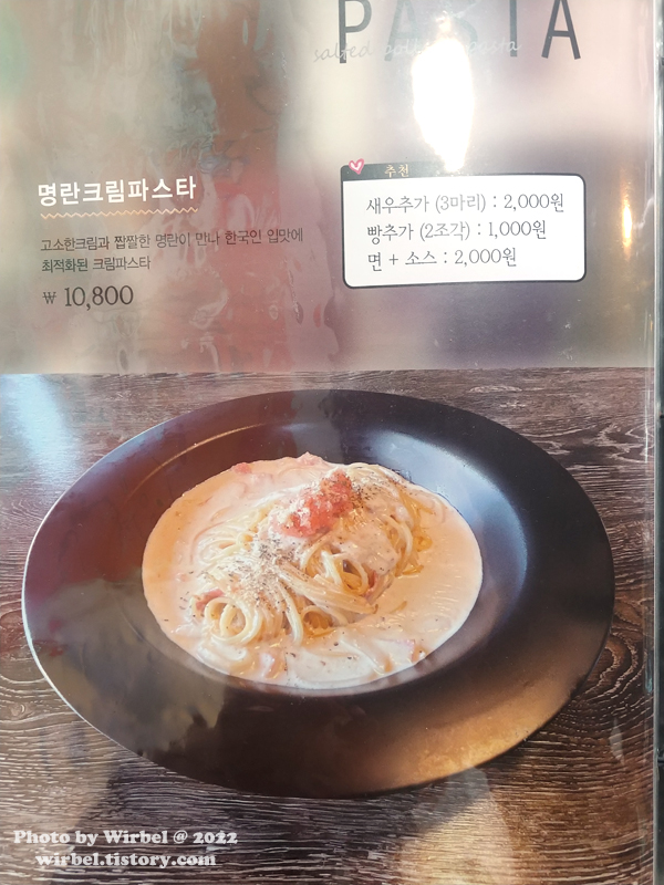 명란크림파스타 10,800원.