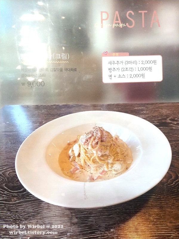 한줄평: 부담없이 방문할 수 있는 파스타 전문점! 방문 시기: 2022년 2월! 이날 가격: 21,800원 시그니처 메뉴: 명란크림파스타 재방문의사: 이 근처에서 가볍게 파스타 먹고 싶을 때 |