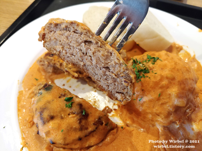 몇 분 지나서 먹어서 그런지 함박이 아주 촉촉한 것은 덜했는데요.