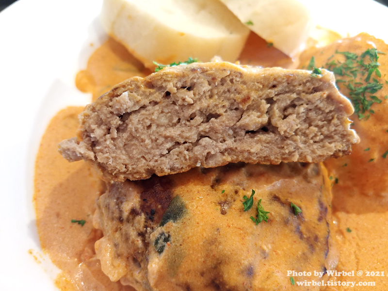 함박스테이크는 이전과 모양이 조금 달라졌습니다.