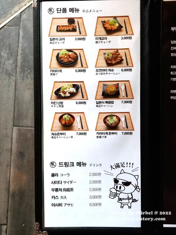 부탄츄 단품 메뉴 가격.