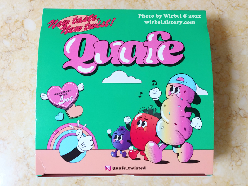 연남동 빵지순례 꽈페 상자에 있는 것은 꽈페 캐릭터 꽈피와 과일 친구들이라고 하네요.
