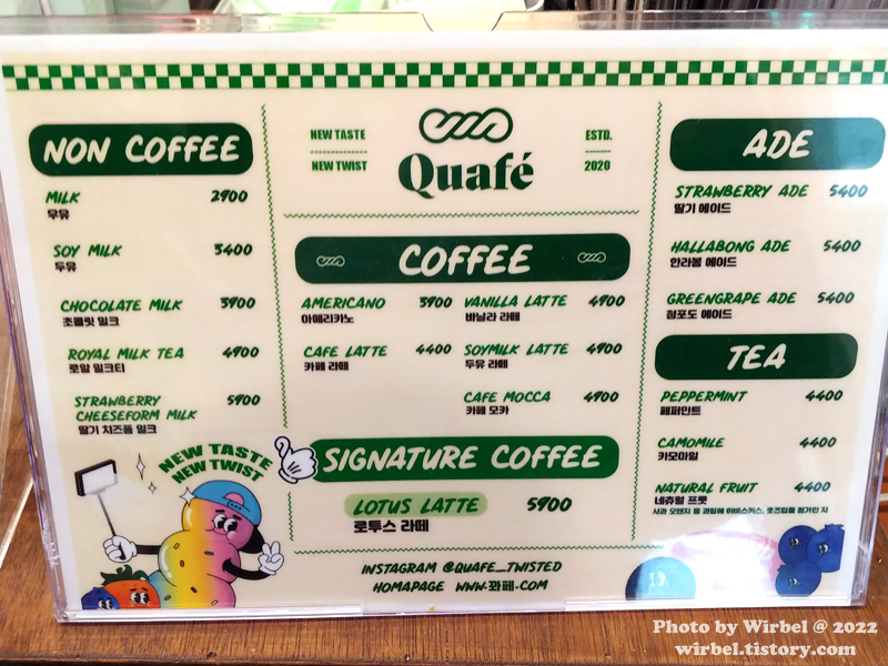 상호: 꽈페 연남본점 / Quafe 전화번호: 02-332-7567 영업시간: 10:30 ~ 21:30 주소: 서울 마포구 동교로46길 20 1층 (서울 마포구 연남동 387-26 1층) 주차: 주차 안 됨 꽈페 홈페이지: http://www.꽈페.com/ 꽈페 인스타그램: https://www.instagram.com/quafe_twisted/ |