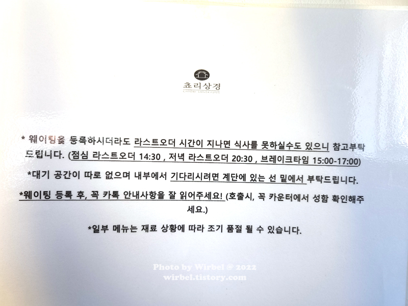 성수동 쵸리상경 오픈런 웨이팅 안내.