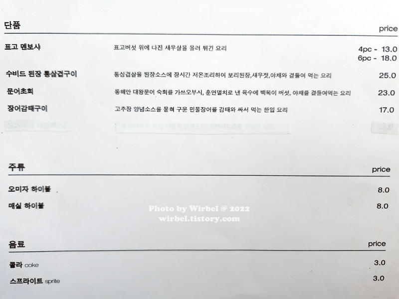 비어벨이 다녀온 맛집 & 여행(wirbel.tistory.com)의 비어벨입니다. 후기 남길 때는 긍정적인 시각으로 남기는 편입니다. ^^ 방문했던 시기에 따라 맛, 가격, 서비스 등이 지금과 다를 수 있는 부분을 참고하시고요. 음식점에 대한 생각은 지극히 주관적이니 맛집 후기는 참고만 하시는 거 다들 아시죠?! ^^ |