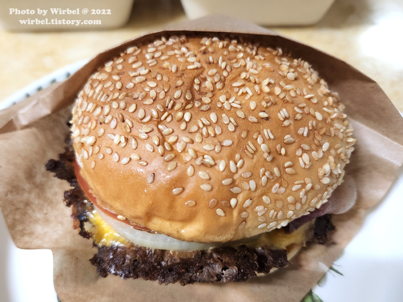 소고기 패티는 육즙이 느껴지는 도톰한 스타일은 아니고 넓고 얇고 바삭바삭한 스타일입니다.
