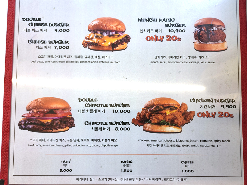 멘치카츠 버거 10,900원.