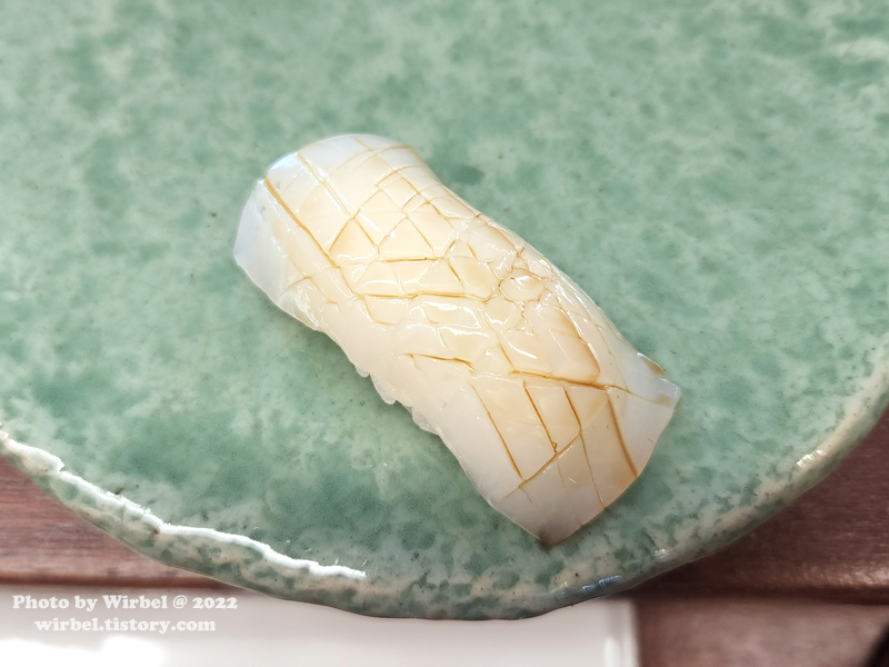 한치에는 간장 이외에 뭔가를 더 바르시는군요.