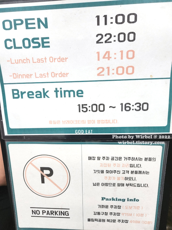 둔촌동 갓잇 주차는 안 되니 근처 주차장을 이용해야 합니다.