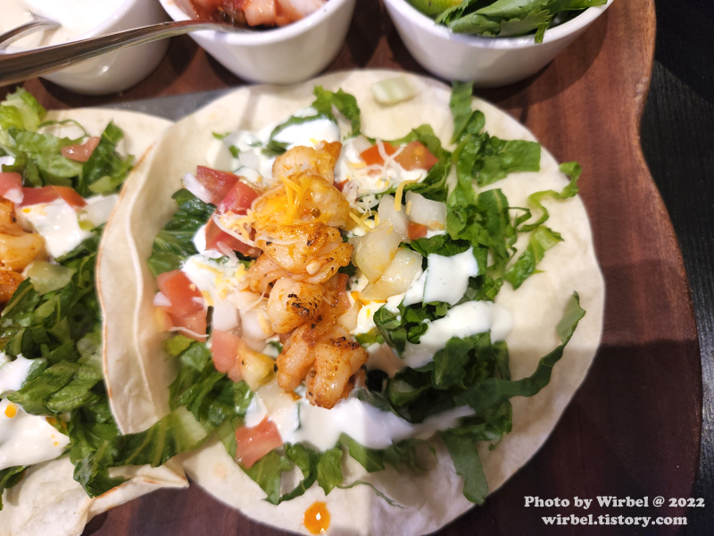 또띠아에 고기, 야채, 치즈 등을 기호에 맞게 올려 함께 먹을 수 있는 메뉴라고 합니다.