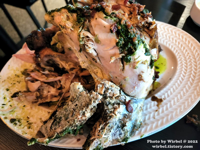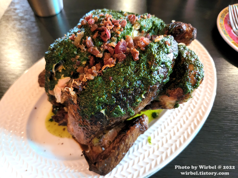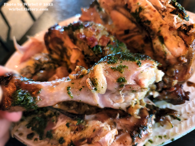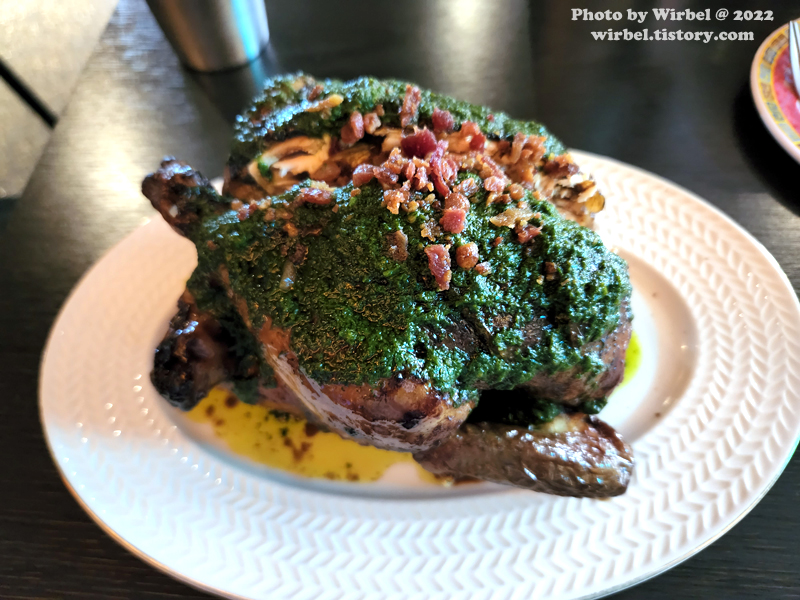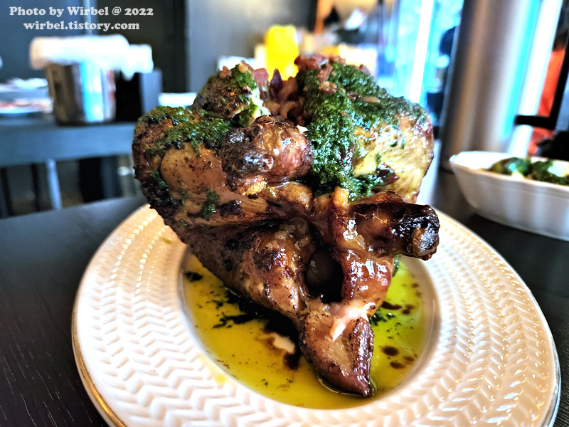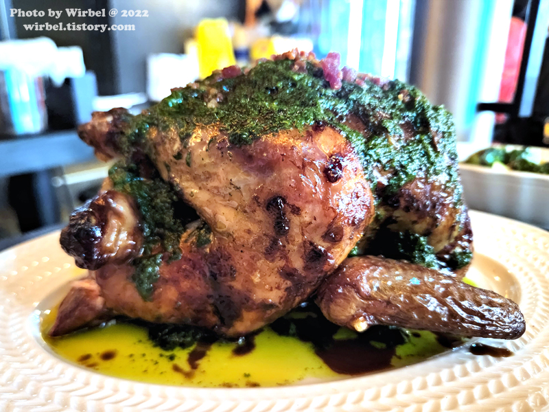 바질 페스토와 발사믹 시초가 곁들여지니 상당히 개성 있는 통닭구이가 되겠습니다.