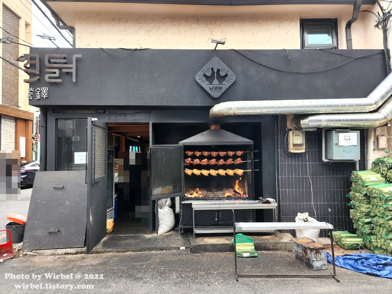 남영탉 식당 밖에서는 에는 장작구이 통닭이 열심히 구워지고 있습니다.