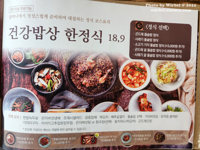 건강밥상심마니 건강밥상 한정식 메뉴 가격.