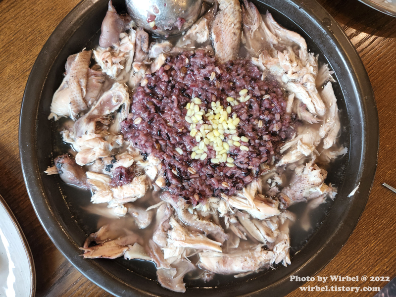 닭백숙, 삼계탕 파는 곳이다보니깐 닭죽이 나오는 것 같습니다.