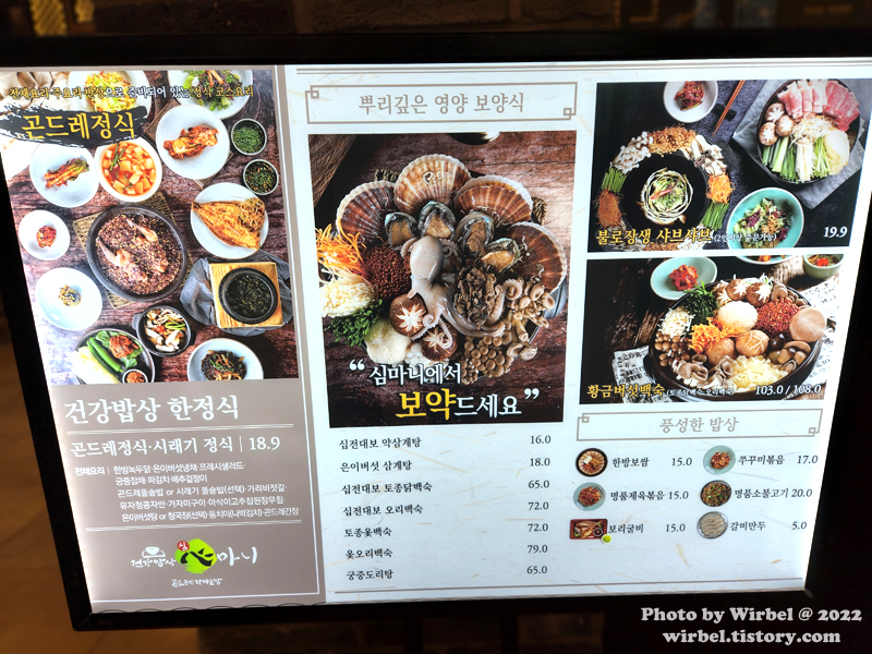 건강밥상심마니 메뉴.