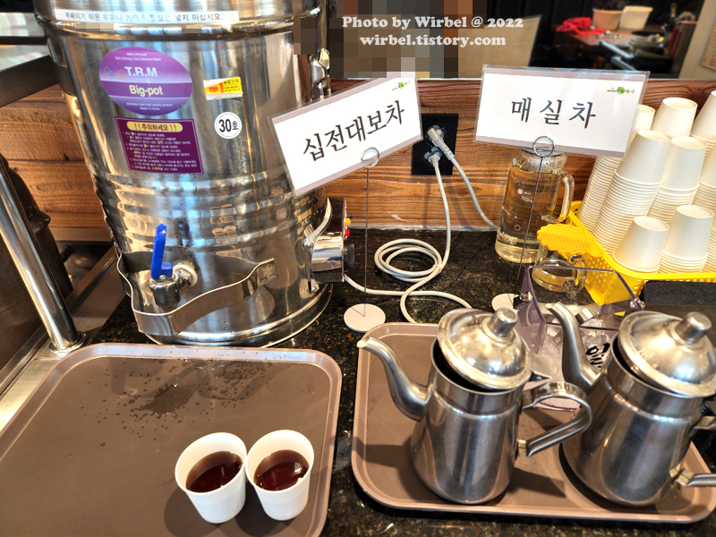 나오는 길에 사람들이 매실차 마시기에 셀프 코너 찾아가서 받아 옵니다.