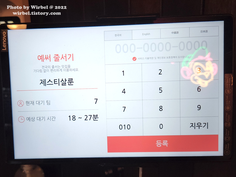 성수 제스티살룬 웨이팅 시스템으로는 예써(Yesir)를 사용하고 있습니다.