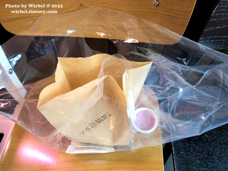 종이봉투 안에는 버거가 차분히 놓여 있습니다.