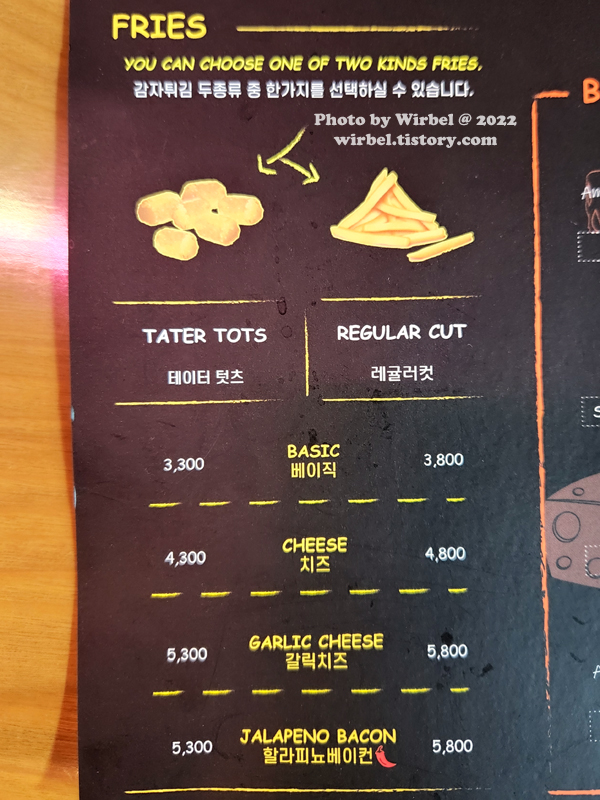 테이터 텃츠 치즈 3,300원 / 레귤러컷 치즈 3,800원.
