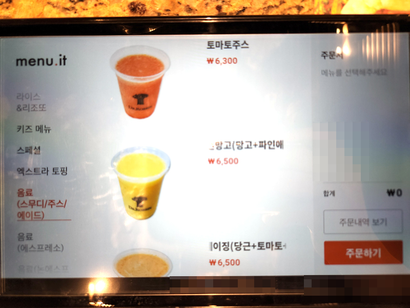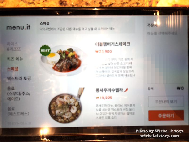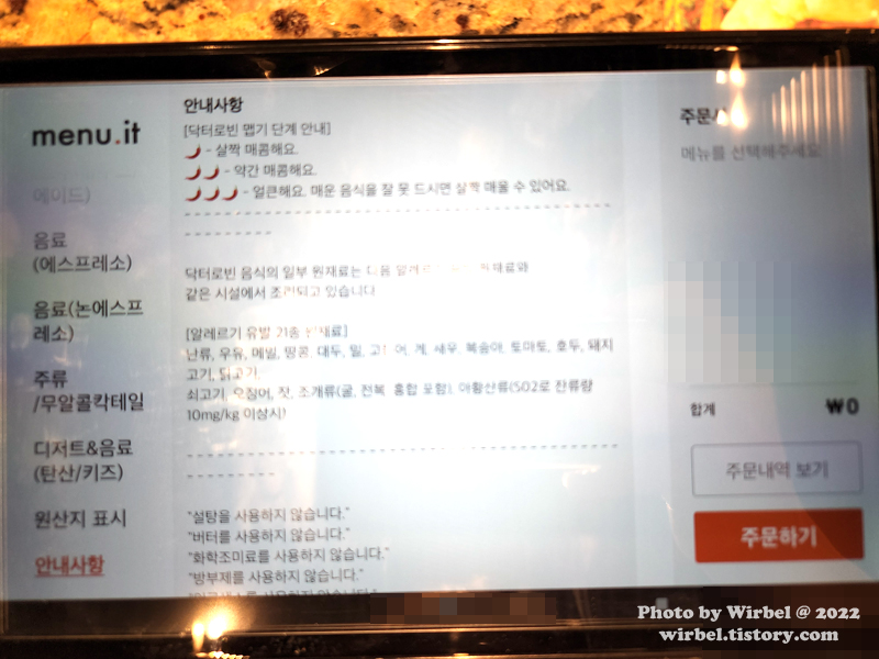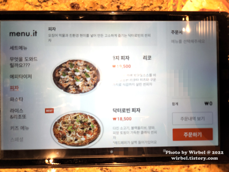 닥터로빈 주문은 테이블에서 menu.it 태블릿으로 주문하는 방식입니다.