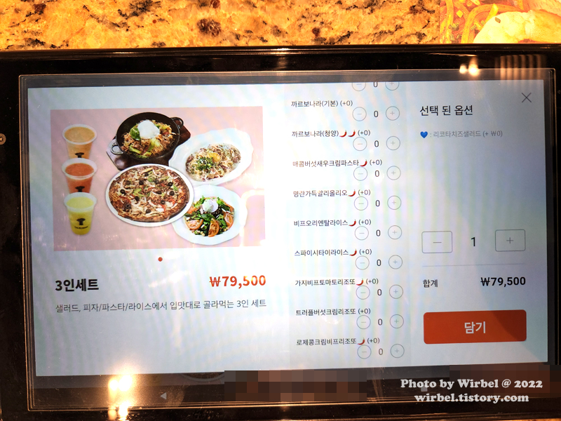 세트는 이렇게 정해진 파스타와 라이스를 고를 수 있게 되어 있습니다.