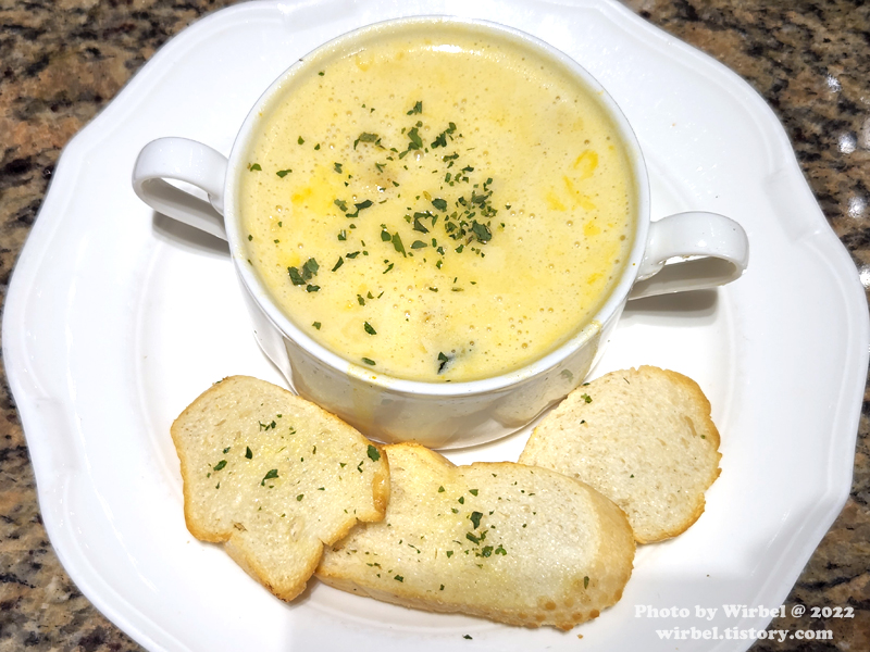 이날은 비가 내리면서 살짝 으스스한 날이었는데 수프로 몸을 녹이기에 좋군요.