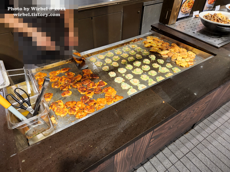 죽석코너에서는 부침개가 잘 구워지고 있습니다.
