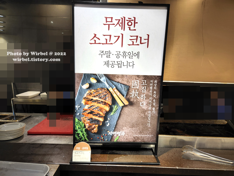 평일 저녁 및 주말 무제한 소고기 코너.