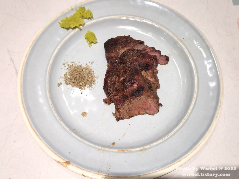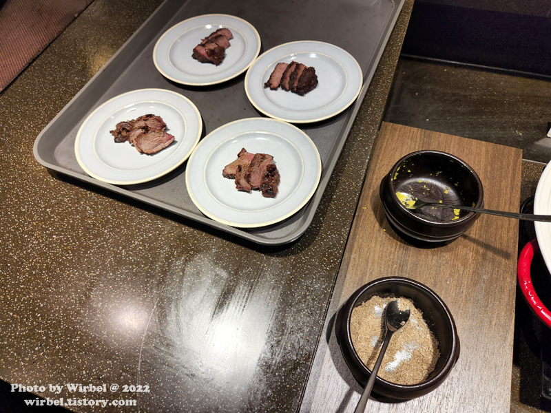 소고기구이는 괜찮을까 싶어서 한 번 더 가져와봤지만 굽기는 좀 아쉽습니다.