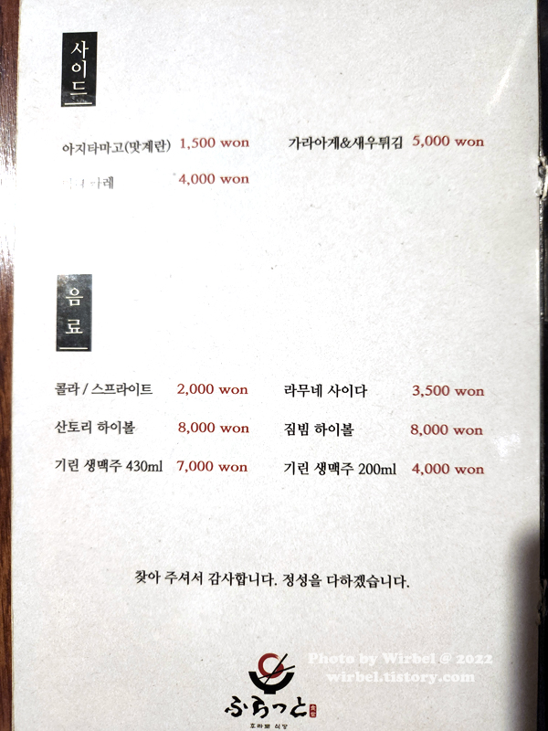 2022년 9월 후라토식당 잠실직영점 후기 https://wirbel.tistory.com/436
